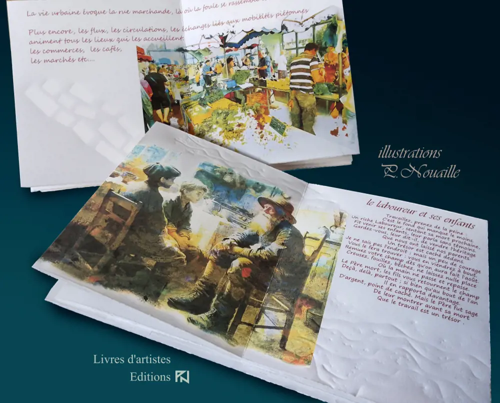 Création et tirage numéroté de livres d'artiste avec estampage personnalisé.