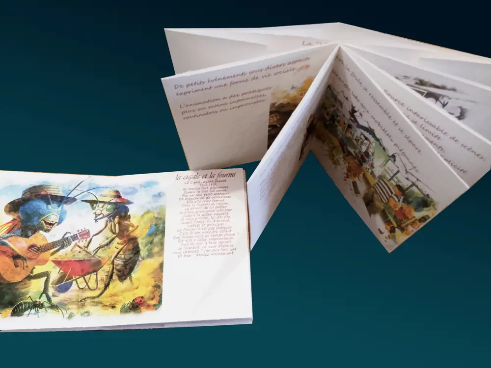 An artist's book is a work of art, a collector's item, unique or limited to a very few numbered copies. This type of book is not published by a publisher, and is therefore not subject to the typographic constraints and conventional rules of printing: it comes straight from an artist's studio. The absence of rules gives the artist complete freedom to invent form, size, appearance and content. The artist's book is not intended to disseminate content; its fundamental purpose is to speak and communicate through its appearance and symbolisms, just as a work of art does. It can take on the most diverse shapes, square or rectangular, or even completely foreign to what a book usually evokes. The pages are sometimes bound together to produce long strips forming parallel folds in the manner of an accordion bellows, or, instead of being attached to each other, they are juxtaposed. Frequently, they are pierced, perforated, engraved, painted, written on or cut out. This gives artists invaluable creative freedom.